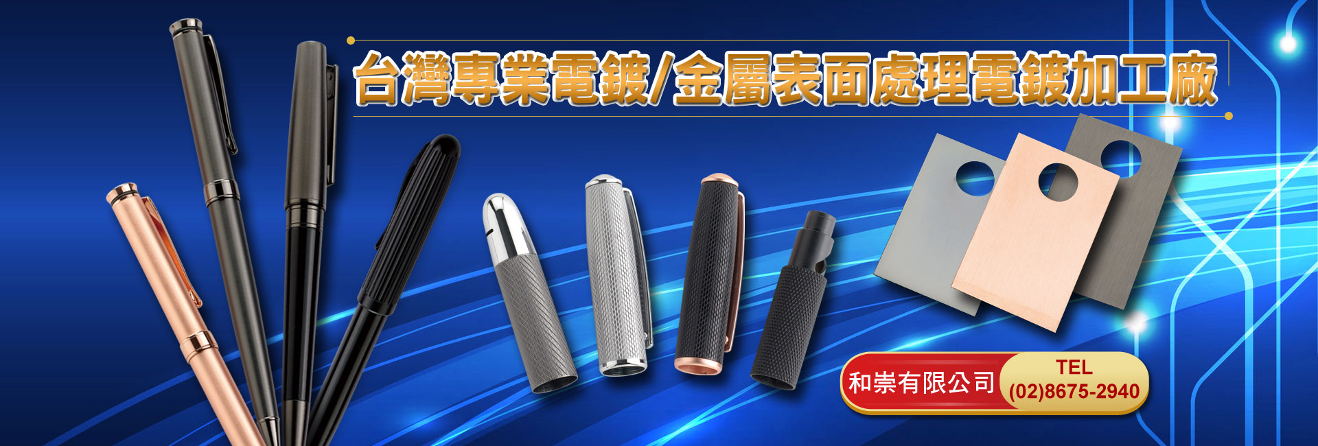 主要產品,客製化電鍍加工:金屬表面處理,吊掛電鍍、環保電鍍、金屬電鍍, 消光電鍍,五金零件電鍍,電子零件電鍍加工,金屬筆管電鍍加工,防鏽電鍍,各種金屬產品表面處理電鍍加工。